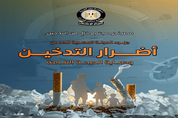 نشر المركز الإعلامي لمجلس الوزراء عددًا من الإنفوجرافات عبر منصاته على مواقع التواصل الاجتماعي، سلط من خلالها الضوء على جهود الدولة للحد من أضرار التدخين وحماية الصحة العامة.