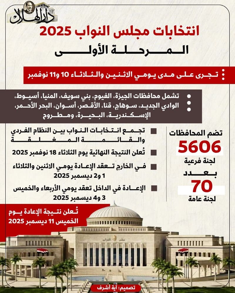 تضم محافظات مجلس النواب 2025 المرحلة الأولى 5606 لجنة فرعية بعدد 70 لجنة عامة، وتجرى على مدى يومي الاثنين والثلاثاء 10 و11 نوفمبر الجاري.