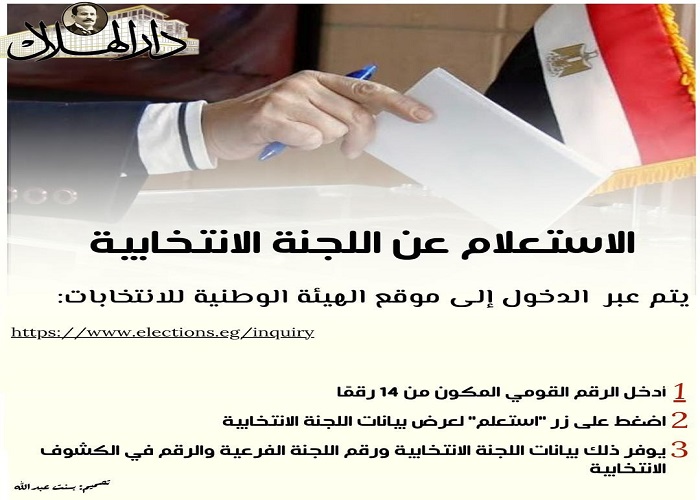 ويتاح للمواطنين الاستعلام عن اللجنة الانتخابية بالرقم القومي، من خلال الخطوات الآتية: