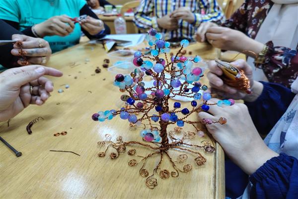 وتضمنت الورشة جلسات تطبيقية على صنع وحدات زخرفية بالأسلاك النحاسية وآليات دمجها وتطعيمها بالخرز والأحجار والفصوص، لإنتاج أشكال ثنائية أو ثلاثية الأبعاد.