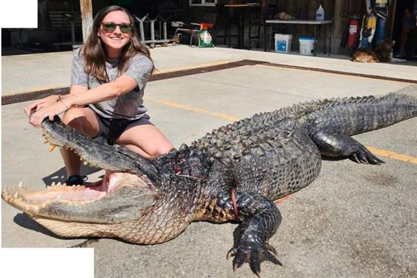 وبحسب وسائل إعلام أمريكية، فإن بريتاني ليفينغستون، التي تٌعرف الآن بلقب «فتاة التمساح»، أمسكت بالتمساح الضخم ووضعته مع زوجها في الجزء الخلفي من شاحنتهما.