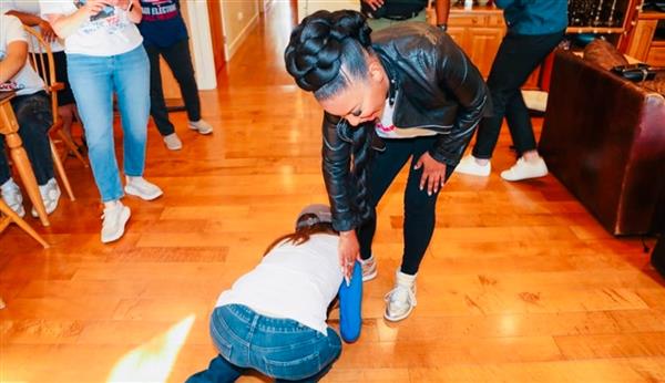 وفي الفيديو، ظهرت المذيعة، البالغة من العمر 64 عامًا، منحنية على الأرض أمام النائبة عن ولاية تكساس، قبل أن تنهض وتعانقها بابتسامة وسط تصفيق وضحكات الحضور.