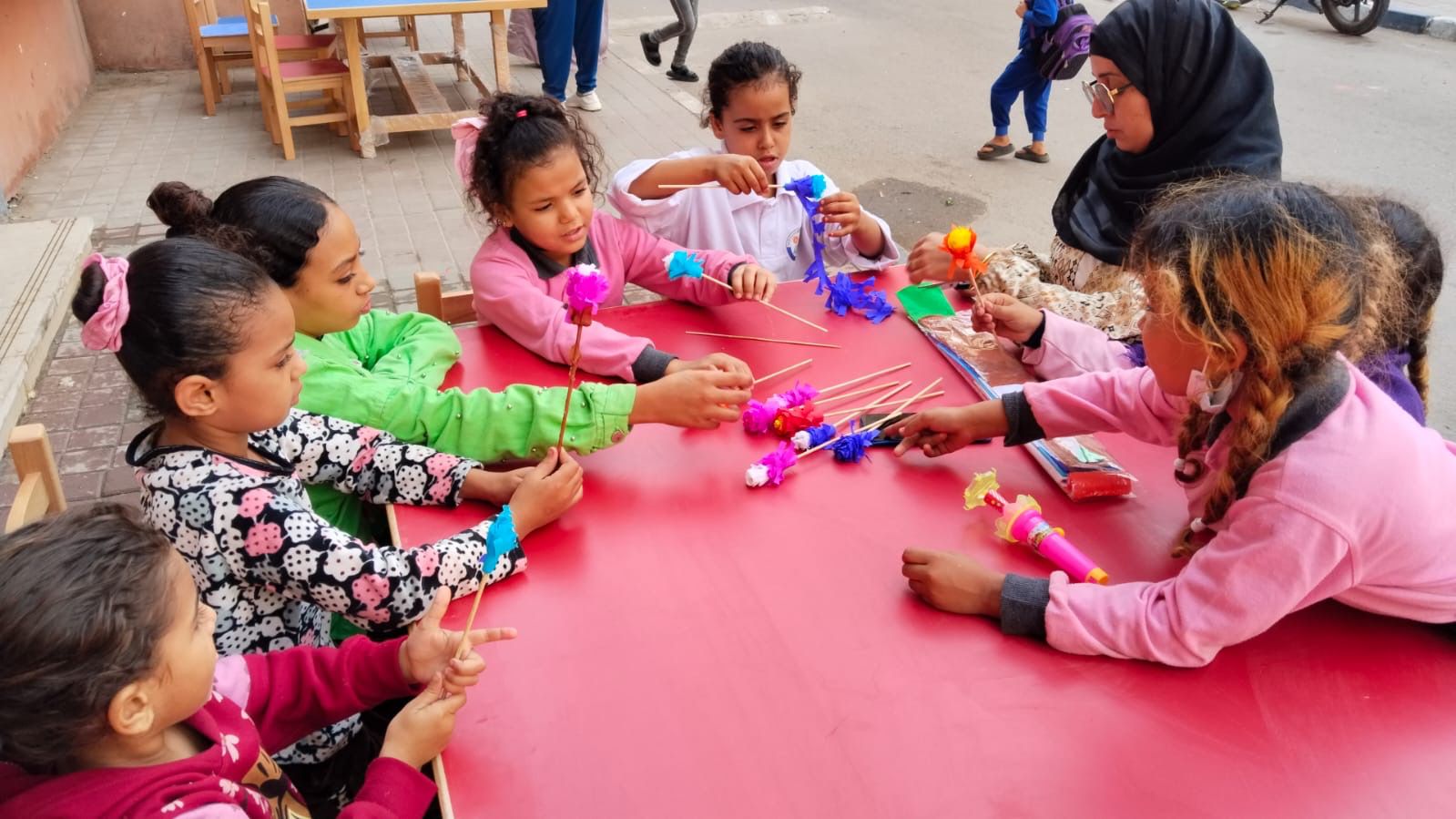 وضمن الفعاليات التي ينفذها المشروع بالتعاون مع جهاز "معا" ضمن برامج الإدارة المركزية للدراسات والبحوث برئاسة د. حنان موسى، شهد المركز عددا من الورش الفنية والأشغال اليدوية لاكتشاف مواهب الأطفال ودعمهم وتنمية قدراتهم، حيث قدمت الفنانة نسمة أحمد ورشة لتشكيل الزهور بأوراق الكروشيه الملونة، وتم توزيعها كهدايا للأطفال، كما نفذت الفنانة سماح عبد القادر ورشة في أعمال الخرز، بالإضافة إلى ورشة الرسم على الوجه قدمها الفنان وليد سعد، وسط أجواء من البهجة والمرح.
