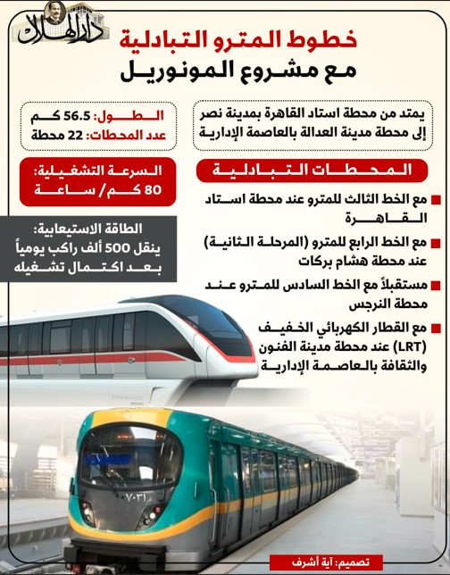 خطوط المترو التبادلية مع مشروع المونوريل من الأسئلة التي كثرت في الفترة الماضية، بالتزامن مع اقتراب افتتاحه الرسمي في شهر نوفمبر الجاري.