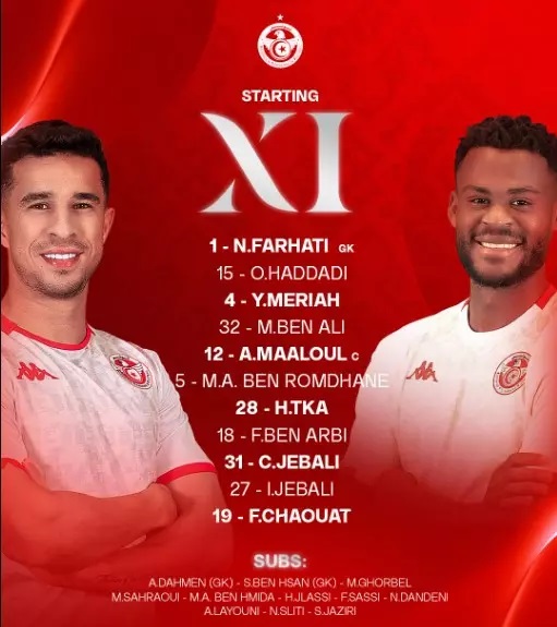 وشهد التشكيل تواجد محمد علي بن رمضان لاعب الأهلي، وعلي معلول نجم الأهلي السابق، وسيف الجزيري مهاجم الزمالك كبديل وذلك كما يلي: