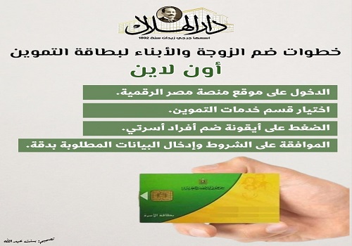 - التأكد من أن جميع أفراد الأسرة المطلوب ضمهم مسجلون على قاعدة بيانات الرقم القومي بنفس عنوان الإقامة.