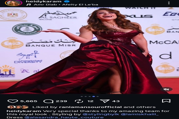 ووجهت هيدي كرم عبر حسابها على إنستجرام شكرها لفريق عملها على هذا اللوك الملكي.