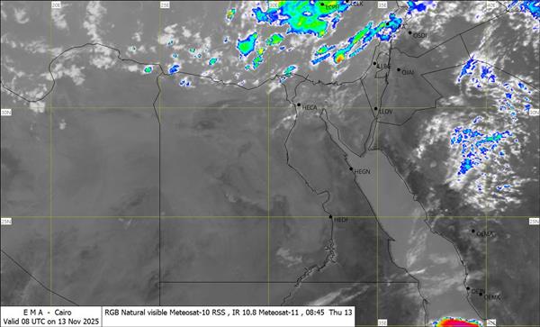 وأوضحت الأرصاد الجوية أنه في ظل المتابعة المستمرة لحالة الطقس، فإن آخر تحديث الخرائط الطقس وصور الأقمار الصناعية يشير إلى الآتي ظهور بعض السحب المنخفضة والمتوسطة خلال الساعات القادمة على مناطق متفرقة من القاهرة الكبرى وجنوب الوجه البحري ومدن القناة وشمال الصعيد يصاحبها فرص أمطار خفيفة قد تكون متوسطة ورعدية أحياناً على بعض المناطق.