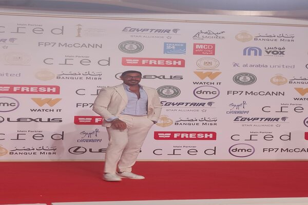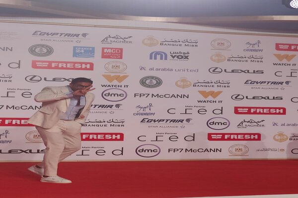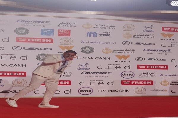 خالد سليم يمازح المصورين على السجادة الحمراء في مهرجان القاهرة السينمائي الدولي