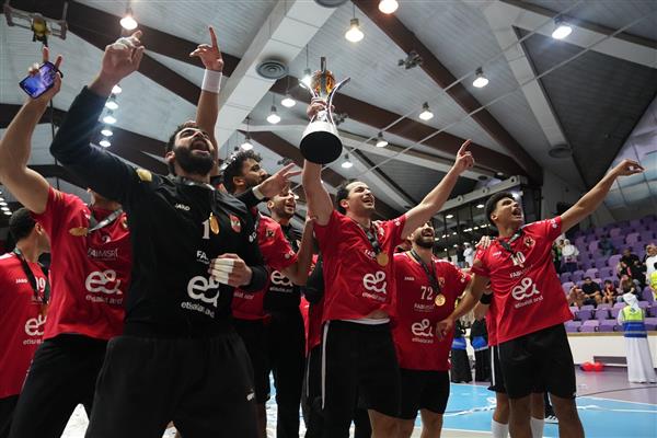 واحتفل الأهلي باللقب مع الجماهير داخل الصالة، بعد نهاية المباراة.
