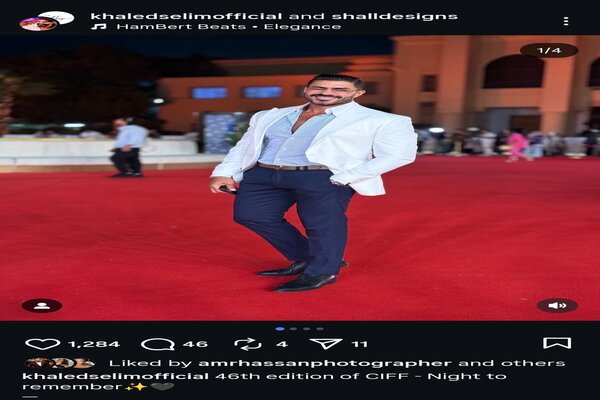 شارك الفنان خالد سليم مجموعة من الصور الجديدة عبر حسابه على موقع التواصل الاجتماعي لتبادل الصور والفيديوهات، حيث ظهر بإطلالة أنيقة من حضوره فعاليات مهرجان القاهرة السينمائي الدولي في دورته الـ46.