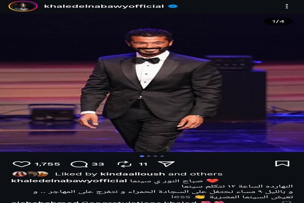 وكتب عبر حسابه الرسمي على موقع التواصل الاجتماعي لتبادل الصور والفيديوهات الانستجرام: "النهارده الساعة ١٢ نتكلم سينما، وبالليل ٩ مساء نحتفل على السجادة الحمراء ونتفرج على المهاجر .. وتعيش السينما المصرية".
