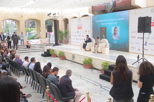 واستعرضت الندوة محطات مهمة في مشواره، بدءا من تخرّجه في المعهد العالي للفنون المسرحية عام 1989 وظهوره الأول في ليلة عسل، مرورا بـ المواطن مصري، وصولًا إلى انطلاقته الكبرى مع يوسف شاهين في فيلم المهاجر عام 1994، الذي فتح له أبواب المشاركة في أعمال عالمية مثل Kingdom of Heaven وFair Game وThe Citizen.