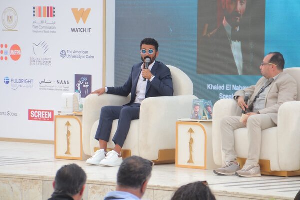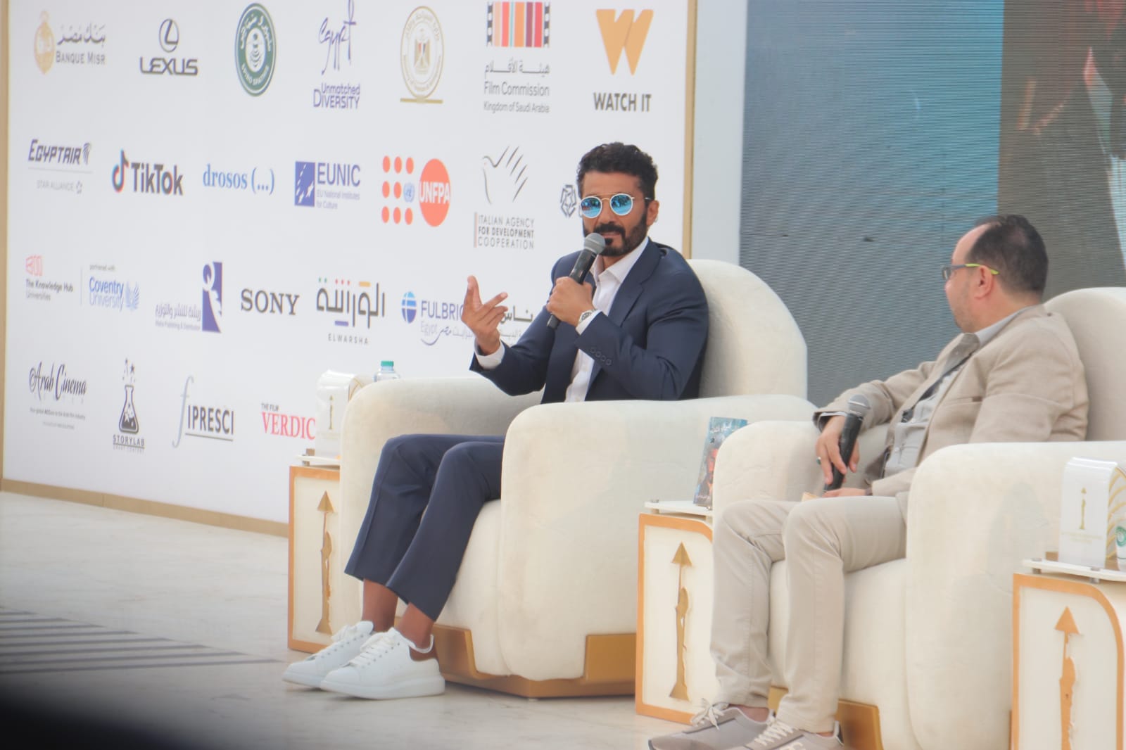 واستعرضت الندوة محطات مهمة في مشواره، بدءا من تخرجه في المعهد العالي للفنون المسرحية عام 1989 وظهوره الأول في ليلة عسل، مرورا بـ المواطن مصري، وصولًا إلى انطلاقته الكبرى مع يوسف شاهين في فيلم المهاجر عام 1994، الذي فتح له أبواب المشاركة في أعمال عالمية مثل Kingdom of Heaven وFair Game وThe Citizen.