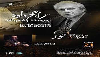 ويقدم داوود خلال الحفل مؤلفه الموسيقي الجديد: «ظل النور» بمشاركة أوركسترا مكتبة الإسكندرية بقيادة المايسترو ناير ناجي، ويقدم بالحفل أيضًا بسكاليا العود والأرغن بمشاركة المؤلف، كما يتضمن ألحانا أخرى من بعض مؤلفاته الدرامية مثل: «رجل في زمن العولمة»، «تقاسيم الراعي والنساء»، «ابتهال» و«وشوشة الورد» مع نخبة من الصوليست وهم: محمد صالح، هدى عبد العظيم وبلقيس.