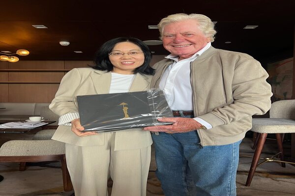 استقبل الفنان حسين فهمى رئيس مهرجان القاهرة السينمائى الدولى الوفد الخاص بقناة ( CGTN ) العربية التابعة لمجموعة الصين للإعلام ضمن مشاركتهم فى مهرجان القاهرة الدولى بفيلم الأرض العزيزة والذى يشارك فى بانوراما الفيلم وعبرت رئيسة الوفد " اوه شياو لان " عن سعادتها بهذه المشاركة وباختيار فيلم الأرض العزيزة لتمثيل الصين فى مهرجان عريق كمهرجان القاهرة السينمائى كما اعربت عن اعجابها بالتنظيم والافتتاح المبهر للمهرجان وقدمت الشكر للفنان حسين فهمى على هذه الدعوة الكريمة وعلى الاستقبال الجيد وعلى التعاون البناء بين مجموعة الصين للاعلام ومهرجان القاهرة السبنمائى.