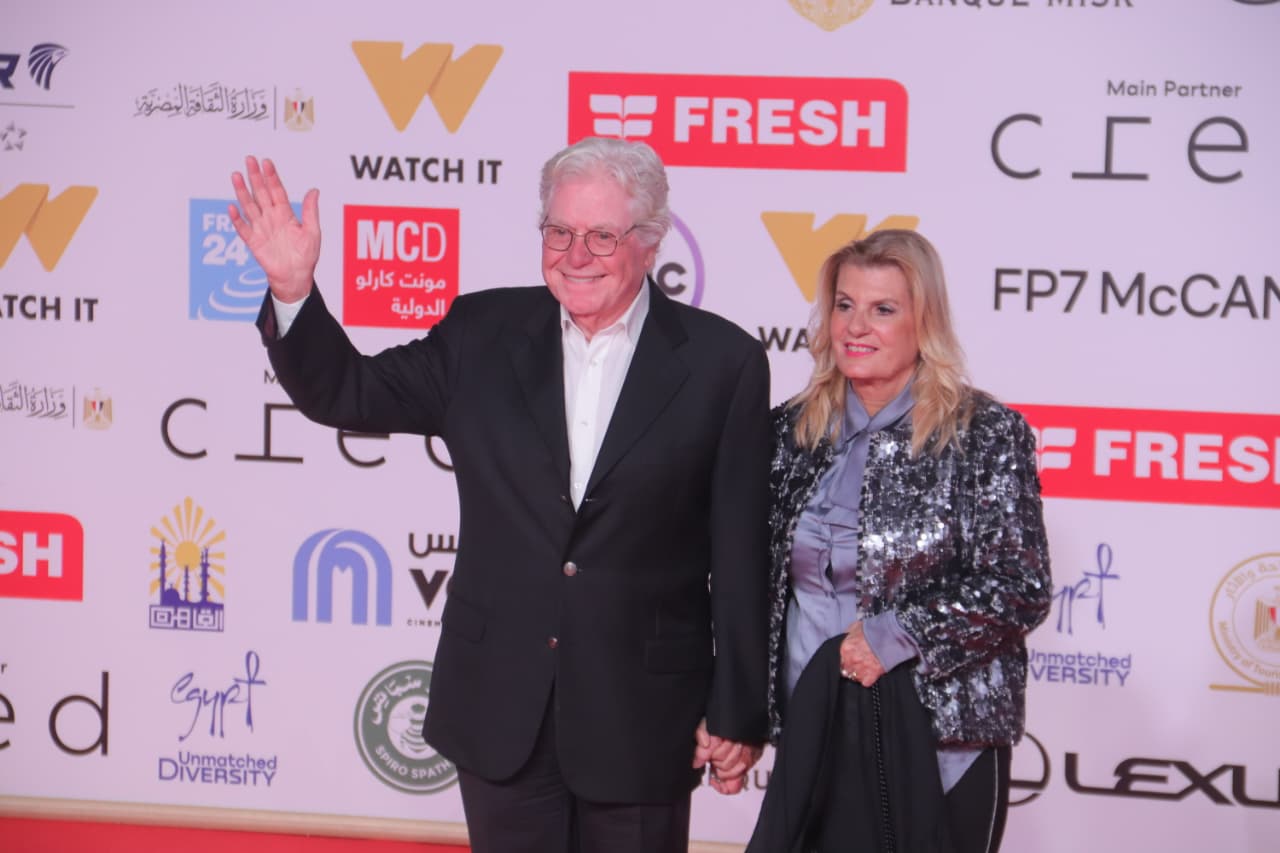 خطفا الثنائي حسين فهمي وزوجته الأنظار من خلال تألقهم على السجادة الحمراء في اليوم الخامس من مهرجان القاهرة السينمائي الدولي، لحضورهما العرض الخاص لفيلم "المهاجر" للمخرج الراحل يوسف شاهين.