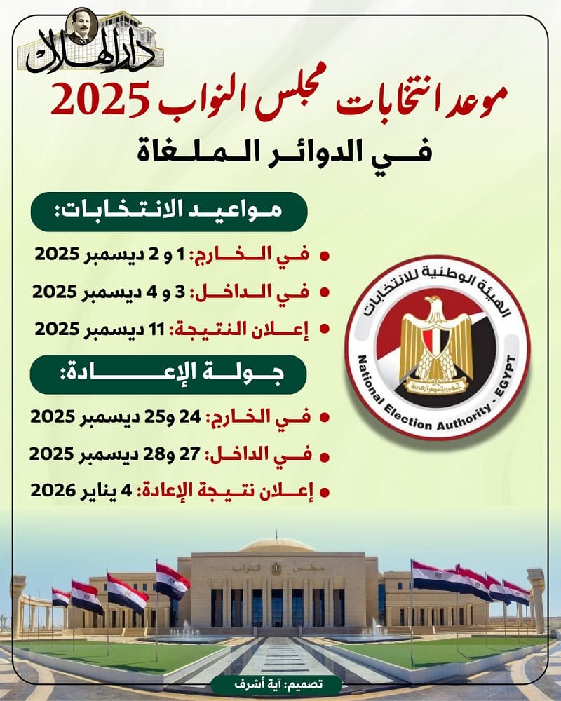 وفي حالة الإعادة تبدأ الدعاية الانتخابية يوم الخميس 11 ديسمبر 2025، وتبدأ انتخابات الإعادة فى الخارج يومي 24 و25 ديسمبر ويومي 27 و28 فى الداخل، فيما يتم إعلان النتيجة يوم 4 يناير 2026