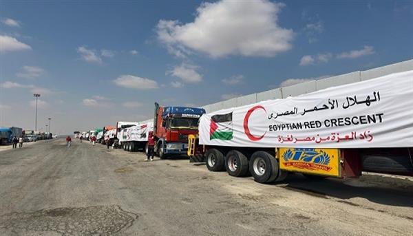 تدفق شاحنات المساعدات الإغاثية العاجلة من مصر إلى غزة
