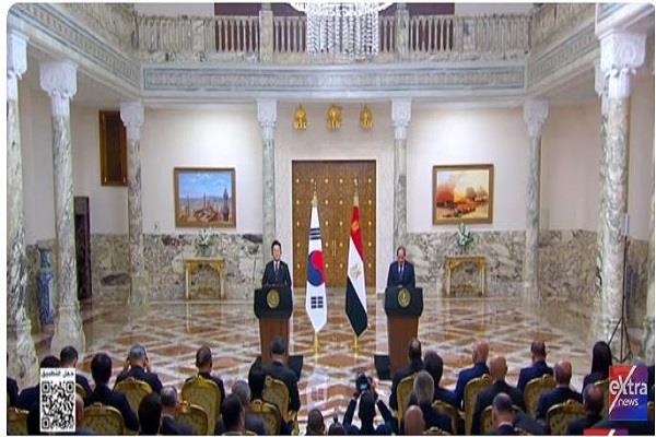 وكان الرئيس السيسي والسيدة انتصار السيسي، استقبلا اليوم الخميس، الرئيس لى چاى ميونغ رئيس جمهورية كوريا والسيدة قرينته، حيث من المقرر أن تتناول المباحثات مجمل جوانب العلاقات الثنائية بين البلدين.