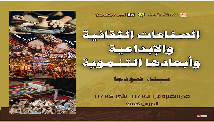 يشهد قصر ثقافة العريش بمحافظة شمال سيناء، في السادسة مساء اليوم الأحد، انطلاق فعاليات مؤتمر «الصناعات الثقافية والإبداعية وأبعادها التنموية.. سيناء نموذجًا»، في إطار برامج وزارة الثقافة لدعم الصناعات الثقافية والإبداعية وتنظمه الهيئة العامة لقصور الثقافة.