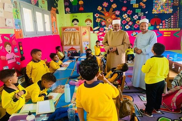 تفقد فضيلته عددًا من الفصول الدراسية بكافة معاهد الإدارة، وبخاصة فصول رياض الأطفال بالمعهد النموذجي الجديد بإدارة مرسى علم، والذي استهلت الدراسة به هذا العام الدراسي، موجِّهًا بضرورة توفير كافة السبل التي تضمن تحقيق أعلى مستويات الجودة التعليمية، ومؤكدًا على دعم المعلمين والطلاب بما يعزز دور الأزهر الشريف ورسالتِه التعليمية والتربوية، ورافقه جولته التفقدية الشيخ كمال الجمل، مدير إدارة مرسى علم.