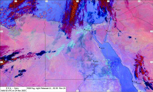 وأوضحت من المتوقع أنه مع تقدم الوقت تتقدم السحب المنخفضة والمتوسطة إلى الداخل يصاحبها فرص أمطار على شمال البلاد حتى القاهرة الكبرى ومدن القناة وسيناء.