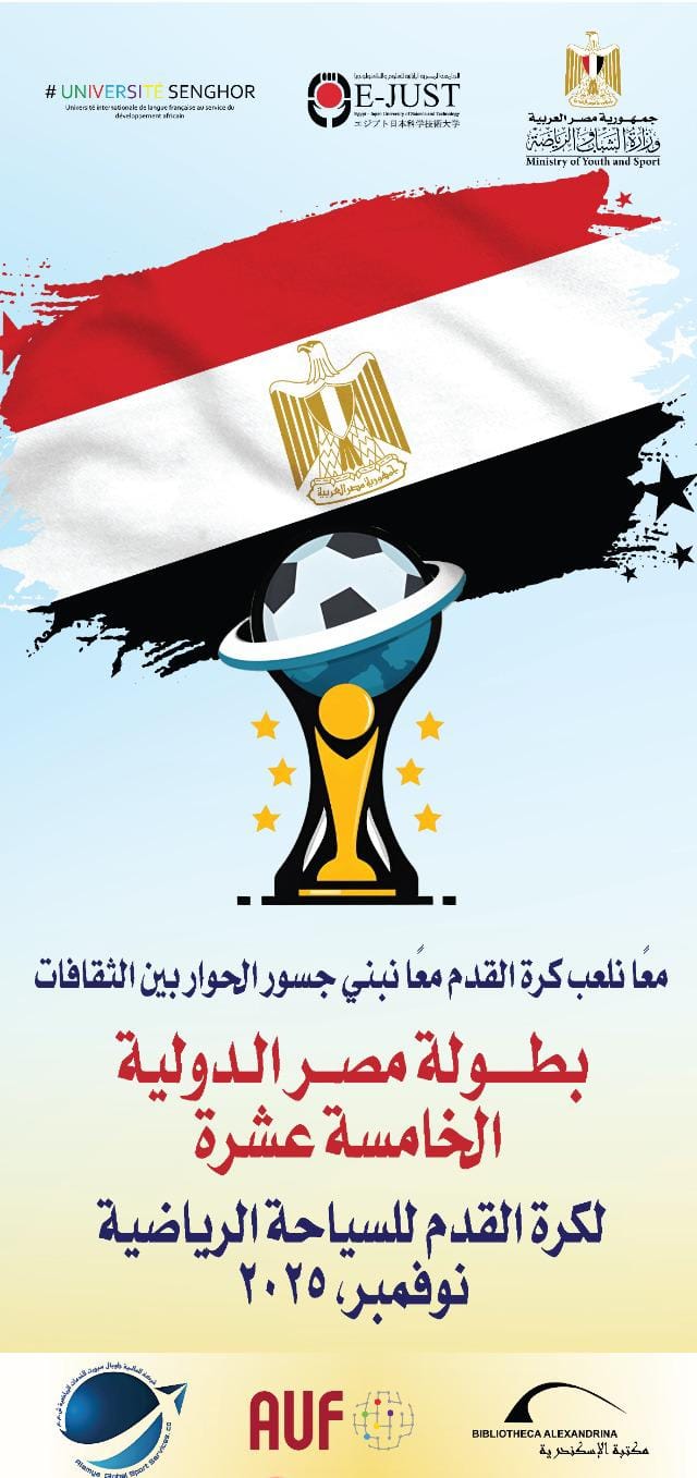تقام فعاليات بطولة مصر الدولية الخامسة عشرة لكرة القدم للسياحة الرياضية في الفترة من 27 إلى 29 نوفمبر 2025 بمشاركة 8 فرق أوروبية وإفريقية ومصرية، وذلك تحت شعار «معًا نلعب كرة القدم.. معًا نبني جسور الحوار بين الثقافات»، وذلك برعاية ثقافية من مكتبة الإسكندرية وباستضافة خاصة من جامعة سنجور الدولية للتنمية الإفريقية والجامعة المصرية اليابانية للعلوم والتكنولوجيا بالإسكندرية.