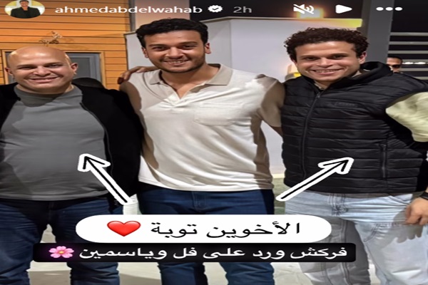 وشارك عبد الوهاب مجموعة من الصور من كواليس العمل معلقًا: " الأخوين توبة فركش مسلسل ورد على فل وياسمين".