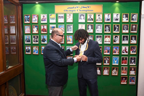 ياسر إدريس يعلن اختيار النني سفيرا للجنة الأولمبية ويهديه القلادة الذهبية| صور
