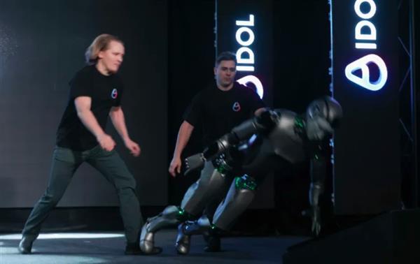 وبينما كان الروبوت يصعد إلى المسرح بصعوبة تحت إشراف مدربين، حاول التلويح للجمهور، فانتهى به الأمر إلى السقوط على وجهه.