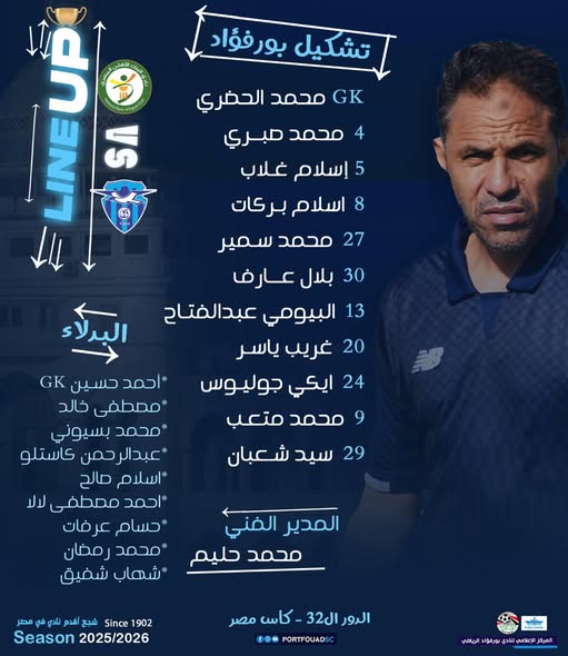 أعلن محمد حليم مدرب فريق بورفؤاد تشكيل فريقه لمواجهة نظيره البنك الأهلي، ضمن منافسات دور الـ32 من بطولة كأس مصر للموسم الجاري.
