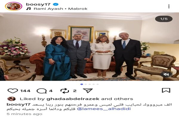 وكتبت عبر حسابها الرسمي على موقع التواصل الاجتماعي لتبادل الصور والفيديوهات الانستجرام: ألف مبروووك لحبايب قلبي لميس وعمرو فرحتهم بنور ربنا يسعد قلوبكم ودائما أسرة جميلة بحبكم.
