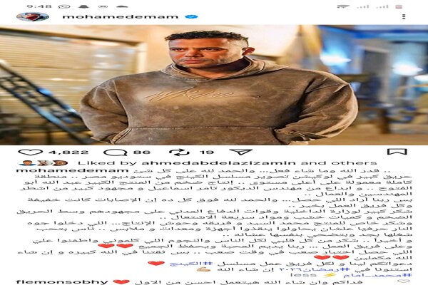 واختتم قائلا: اللي حصل اختبار صعب في وقت صعب .. بس ثقتنا في الله كبيره و إن شاء الله مكملين، دعواتكم لينا و لكل فريق عمل مسلسل الكينج، استنونا في رمضان ٢٠٢٦ إن شاء الله.