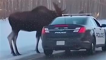 وفي اللقطات يمكن رؤية ظبيين موظ يخرجان من بين الأشجار ويتجهان مباشرة نحو مركبة شرطة، إذ ظهرت الحيوانات وهي تستكشف الإطارات قبل أن تتحول حركتها إلى عنف واضح، حيث بدا أحدها وكأنه يصدم باب السيارة بقرنيه بينما يدفع آخر مؤخرة المركبة بقوته، ما تسبب في انزلاقها جانبًا فوق الجليد.