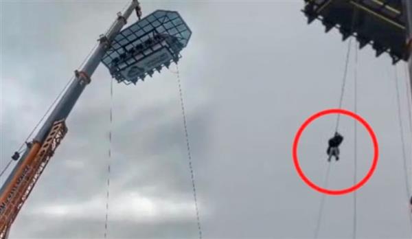 وفي الفيديو، ظهرت فرق الإنقاذ وهي تتسلق الحبال للوصول إلى المنصة المعلقة، حيث تم إنزال الأم وطفليها أولًا، ثم الأب وموظفة المطعم، وتمكّن الجميع من النزول بأمان بحلول الساعة 4:30 مساءً، بعد وضع شبكة أمان أسفل المنصة.