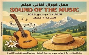 تستضيف مكتبة الإسكندرية من خلال بيت السناري الأثري بحي السيدة زينب بالقاهرة، التابع لقطاع التواصل الثقافي، حفل كورال أغاني الفيلم العالمي "The Sound of Music"، وذلك يوم الثلاثاء 2 ديسمبر 2025، في تمام الساعة السابعة مساءً، بمقر بيت السناري.