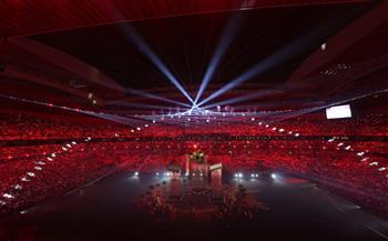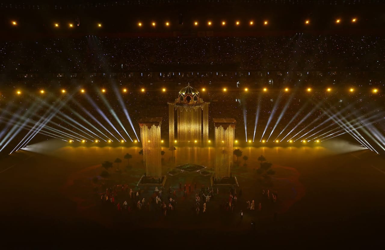 الحفل يقام على ملعب البيت، في أجواء جماهيرية مميزة، حيث تسود احتفالات بطابع خليجي عربي، يعكس الثقافة الخاصة بالبلد المنظمة.