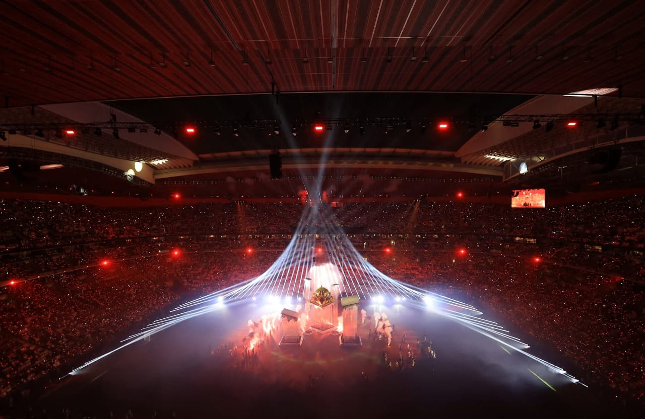 غلب على الحفل عنصر الإبهار، باستخدام التقنية المتقدمة في الأضواء، ما أشعل الحفل.