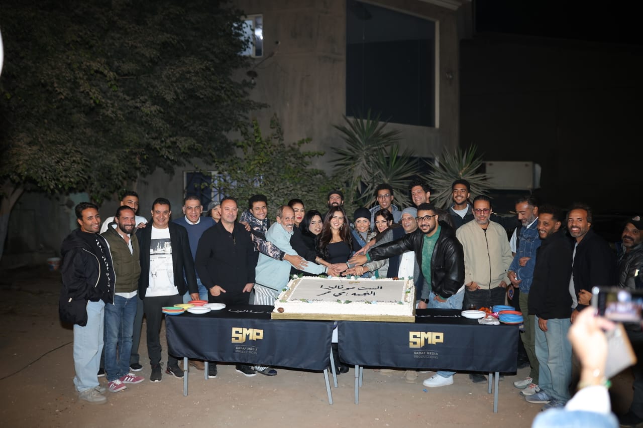 وظهرت مي بصحبة معظم أبطال وصناع المسلسل، في الصور الأولى من كواليس التصوير، وجاء الاحتفال بتورتة كبيرة اسم العمل وبطلته ومؤلفه ومخرجه.