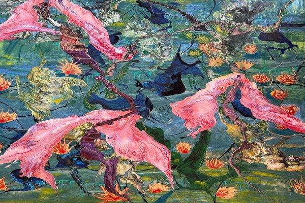 يقدّم المعرض رحلة بصرية عبر: أشكال عضوية مستوحاة من الحدائق والشعاب المرجانية وعوالم ما تحت الماء، مساحات لونية مشعة تستحضر الطاقة والبعث واليقظة الروحية، لوحات ضخمة تنبض بالحياة والحركة والثراء الشعوري.