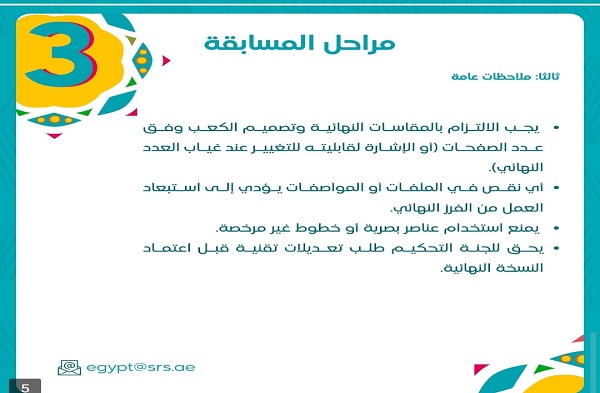 وتتضمن المسابقة عدة شروط أبرزها أن يكون العمل إبداعًا أصيلًا من المتسابق وأن يُراعي عدم اشتراك العمل في مسابقة أخرى، أو عرضه على مواقع التواصل الاجتماعي من قبل.