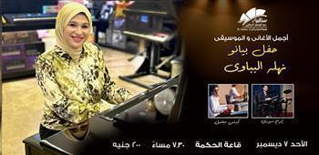 في أمسية فنية مميزة، تستضيف ساقية عبد المنعم الصاوي حفلًا موسيقيًا بعنوان "أجمل الأغاني والموسيقى" تقدمه عازفة البيانو الموهوبة نهلة البباوي، وذلك يوم غد الأحد ٧ ديسمبر في قاعة الحكمة، في الساعة ٧:٣٠ مساءً.
