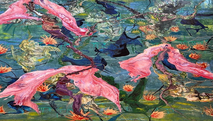 يقدّم المَعْرِض رحلة بصرية عبر أشكال عضوية مستوحاة من الحدائق والشعاب المرجانية وعوالم ما تحت الماء، مساحات لونية مشعة تستحضر الطاقة والبعث واليقظة الروحية، لوحات ضخمة تنبض بالحياة والحركة والثراء الشعوري.