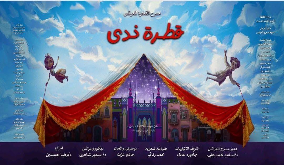 العرض المسرحي «قطرة ندى» من بطولة النجوم محمد محمود، إيهاب فهمي، مروة عبدالمنعم، محمد رضوان، محمد أبو داوود، رضا إدريس، محمود فتحي، محمد عزت، شكري عبدالله، رفعت ريان، ناصر عبد التواب، غناء حبيبة حاتم عزت، فاطمة محمد علي، شهاب عزت، عادل الجمل، بالإضافة إلى نجوم مسرح العرائس وهم: سيد رستم، هشام طلعت، حسام الشربيني، هاني عزالدين، محمد سلام، دعاء حسام الدين، سحر منصور، محمد شاكر، ميكانيزم خالد، تنفيذ ملابس جميل وشيماء.