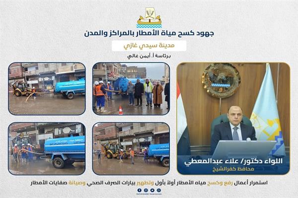 تابع اللواء دكتور علاء عبدالمعطي محافظ كفرالشيخ جهود الوحدة المحلية لمركز ومدينة سيدي غازي فى كسح مياه الأمطار ومواجهة تداعيات التغيرات المناخية وتحسين خدمات المرافق.