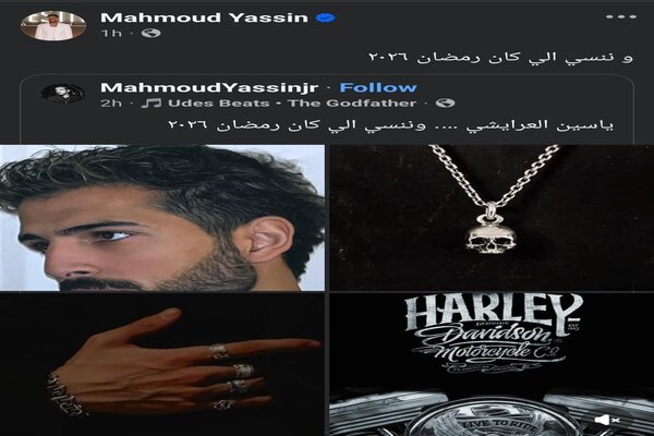 وشارك محمود ياسين جونيور مجموعة من الصور، وعلق: ياسين العرايشي، وننسي الي كان رمضان ٢٠٢٦.