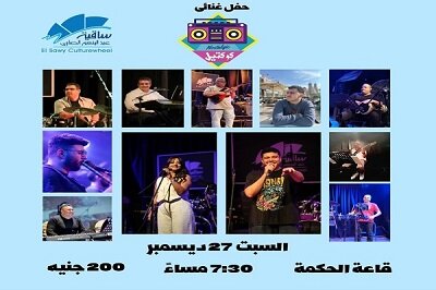 تنظم ساقية الصاوي حفل غنائي لفرقة«كوكتيل باند» على مسرح قاعة الحكمة، تعيد من خلاله جمهورها إلى أجواء وذكريات فن وموسيقى حقبة التسعينيات الذهبية.