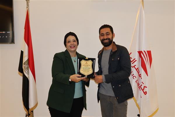 وكرّمت المكتبة كلًا من أحمد نجيب مدير إدارة التعاقدات، وتامر علي مدير مركز التدريب، لفوزهما بجائزة التميز الوظيفي لعام 2025، تقديرًا لجهودهما المتميزة في الارتقاء بالعمل الإداري والتدريبي داخل المؤسسة.