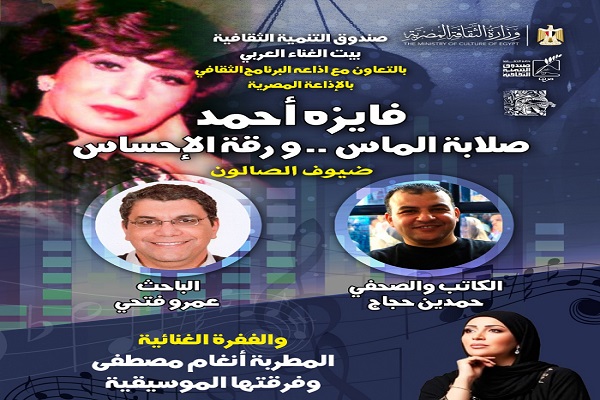يقدم صالون «مقامات» الشهري ببيت الغناء العربي بقصر الأمير بشتاك بشارع المعز، حلقة جديدة تحت عنوان: «فايزة أحمد.. صلابة الماس ورقة الإحساس»، وذلك في تمام الثامنة مساء اليوم الخميس 11 ديسمبر، بالتعاون مع إذاعة البرنامج الثقافي بالإذاعة المصرية.